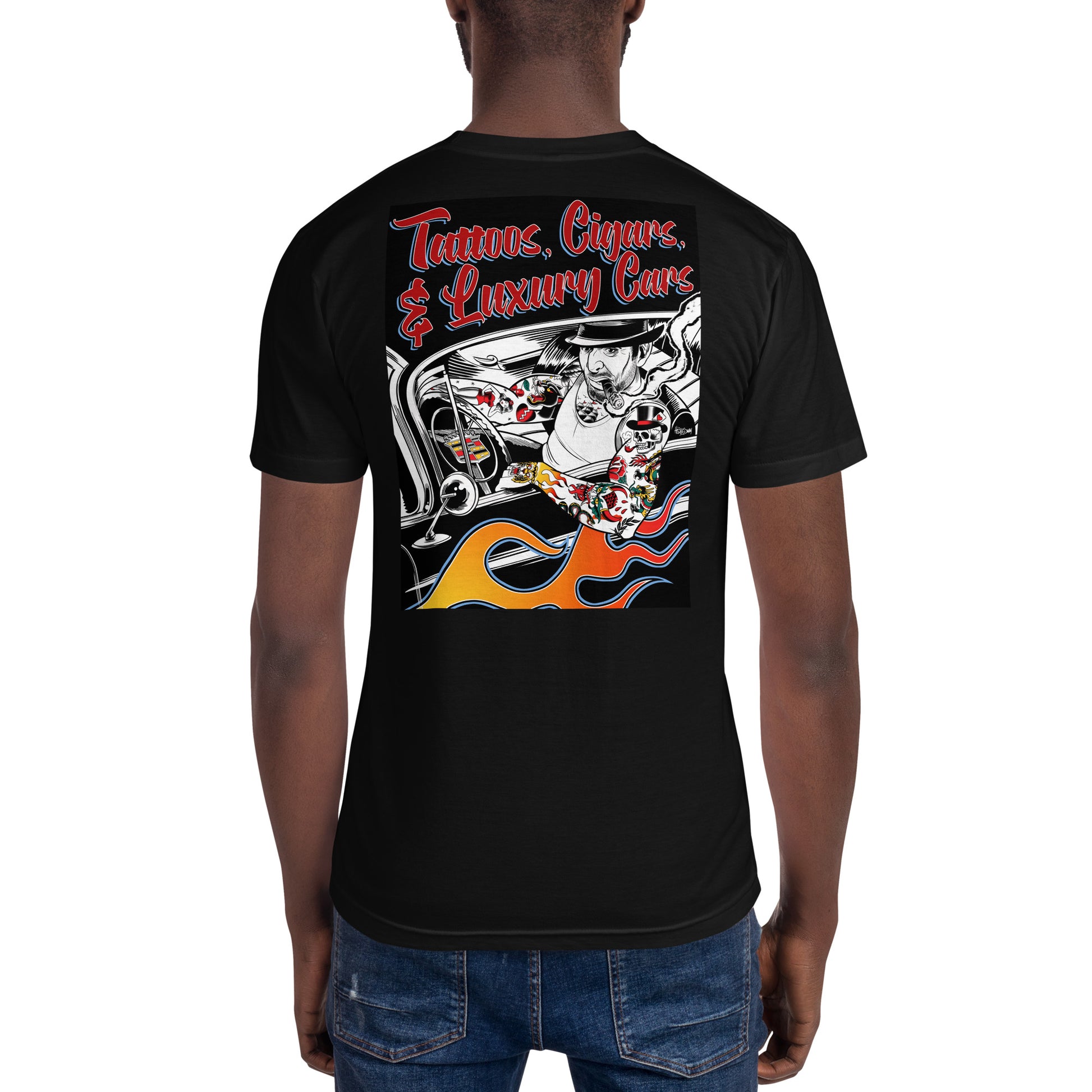 Some things just go together like Tattoos, Cigars, & Luxury Cars. Show the world your affinity for this trinity and buy this kick ass shirt.